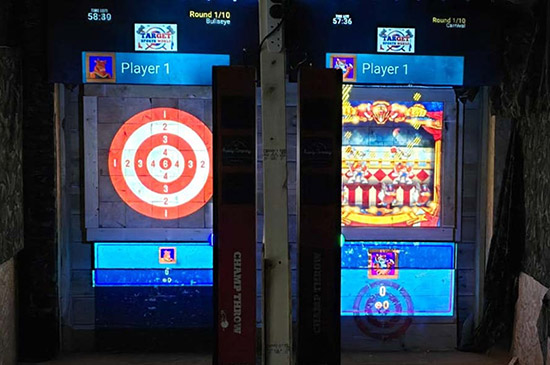 Recently, they’ve added some new, electronic axe-throwing activities to what is one of their most popular attractions: smart screens where visitors can throw real axes at moving targets in a range of fun and exhilarating scenarios.